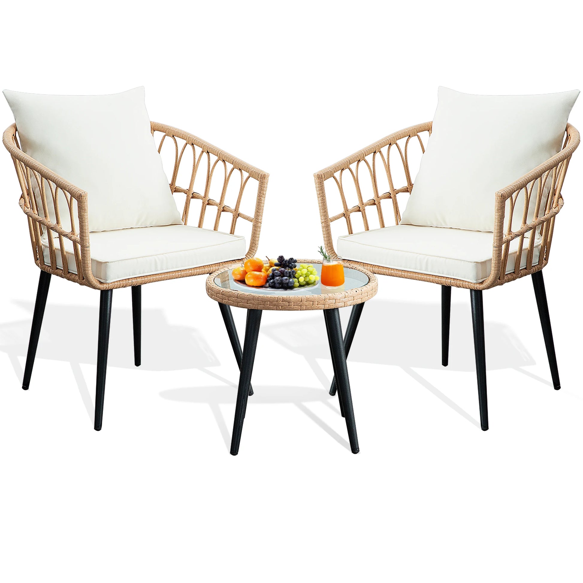 - Durable, weather-ready materials – Woven wicker and a sturdy, rust-resistant frame stand up to sun, rain, and everyday outdoor use, year after year.