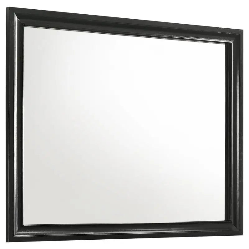 - Black wood finish with silvery accents creates modern drama that elevates any bedroom style.