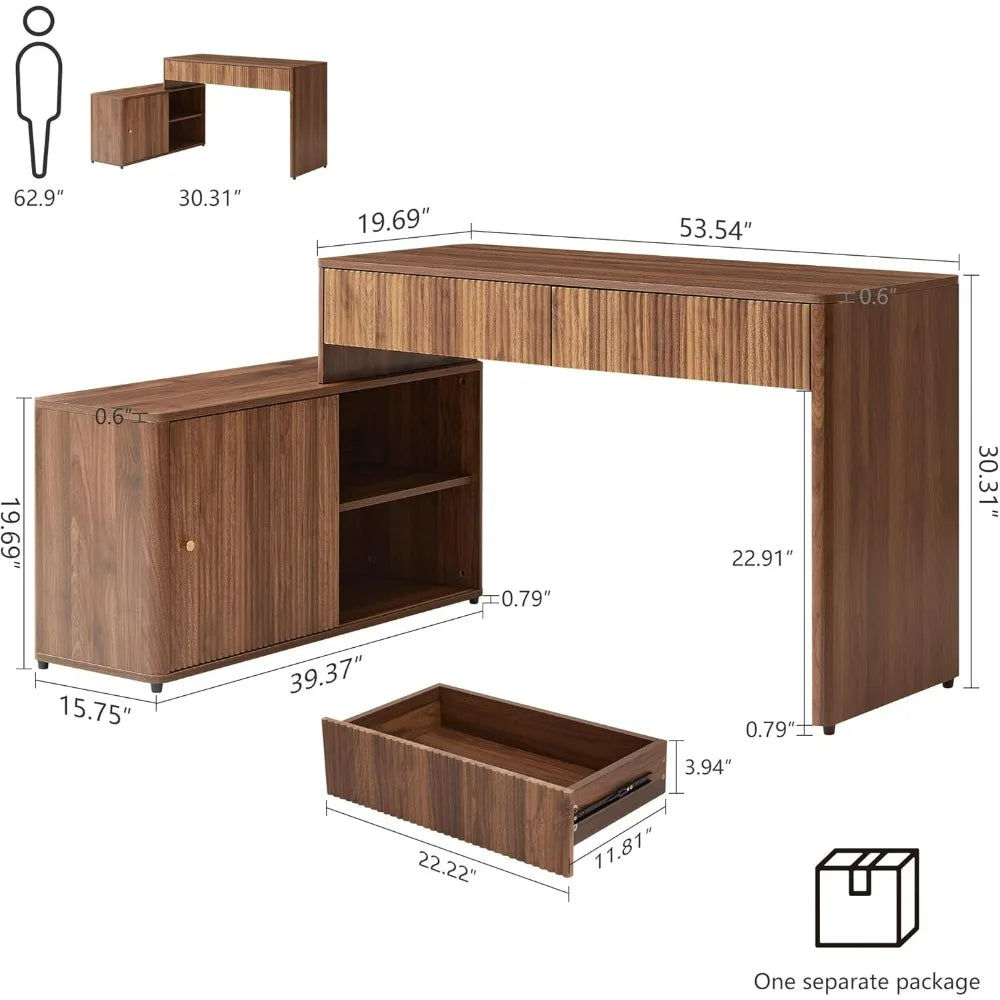 Desk Walnut L-Shaped Computer Desk With Drawers, Home Office