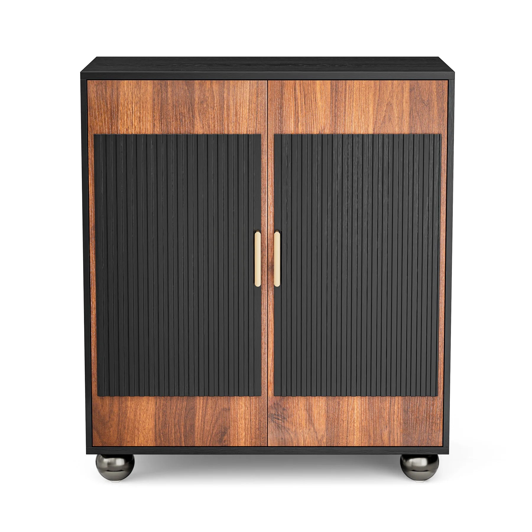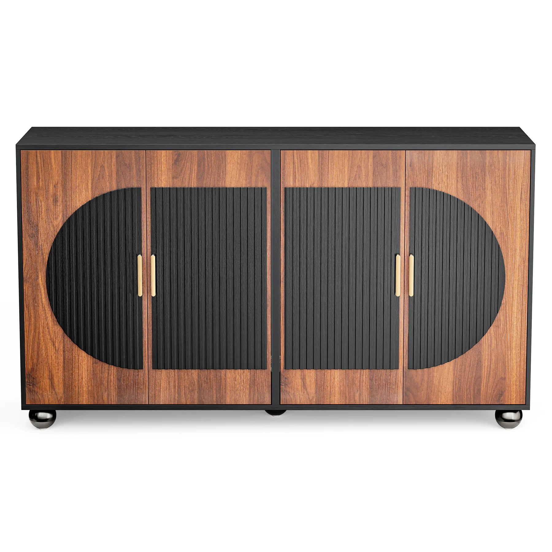- Elegant Black & Walnut finish with curved doors and metal handles adds refined texture; easy to assemble and flexible as a TV stand, buffet, or display cabinet in your living space.